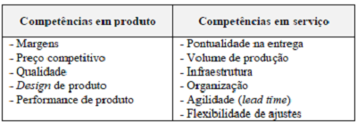 As competências do fornecedor englobam duas dimensões, denominadas de competências em produto e competências em serviço, compreendendo os atributos de produto e serviços mais valorizados pelos varejistas. Foram considerados os atributos levantados por Frederico e Robic (2008), identificados a partir de extensivo levantamento bibliográfico baseado nos estudos desenvolvidos por Arbuthnot, Slama e Sisler (1993); Ellram (1990); Doney e Cannon (1997); Groves e Valsamaskis (1998); Ruyter, Moorman e Lemmink (2001); Tuten e Urban (2001); Fisher (1997) e Christopher (2000). O quadro 1 apresenta para cada dimensão, os atributos mais relevantes: