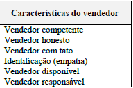 As características de perfil do vendedor mais citadas na literatura para a construção da confiança são apresentadas no quadro 3.