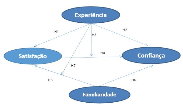 Todavia, Ha and Perks (2005, p. 442) definem familiaridade como “o armazenamento de conhecimentos favoráveis sobre um website em particular, acumulado pela experiência do consumidor” e chamam atenção para a lacuna existente na literatura de e-marketing no que diz respeito ao papel da variável experiência. Reforçando essa posição, McCoy et al. (2008, p. 438) utilizaram as abordagens de Gefen et al. (2003) e Komiak e Benbasat (2006) para definir familiaridade como “o entendimento de alguém sobre uma entidade, frequentemente baseada nas interações prévias, experiência e aprendizagem sobre o que, quem, como e quando está acontecendo”. Novamente aparece a experiência ligada à familiaridade, deixando dúvidas acerca da relação entre essas variáveis. Com o intuito de esclarecê-la, Ha e Perks (2005, p. 439) propõem que “a experiência com o varejista na internet seja estudada como uma variável moderadora”, pois afetaria as percepções dos consumidores em relação aos websites e o comportamento do consumidor em mercados eletrônicos. A partir disso foi formulada a Hipótese 7.