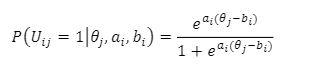 Em que, é a probabilidade de o indivíduo j com habilidade acertar o item i; é o parâmetro de dificuldade do item i, medido na mesma escala de habilidade; é o parâmetro de discriminação do item i.