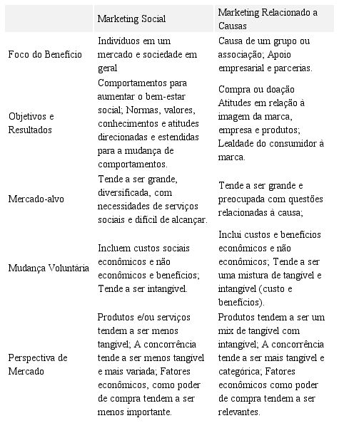 Contribuições teóricas: busca abordar as diferenças entre Marketing Social e outras