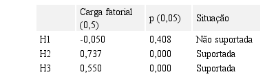As hipóteses inicialmente propostas para este trabalho buscavam identificar as relações entre os elementos do modelo, para confirmá-lo ou não. Após análise do modelo, tem-se as situações apresentadas na Tabela 2.