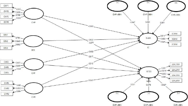 O próximo passo foi a análise da proporção da variância das variáveis latentes endógenas explicada pelo modelo estrutural, expresso pelo coeficiente de determinação (R.).