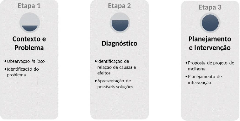 Nesse contexto, na etapa 1, a partir da observação in loco, foi possível detectar que a unidade focal da pesquisa apresentou, por vezes, dificuldades no gerenciamento de alguns desses processos, acarretando prejuízos não somente ao interessado do processo, como também à própria organização. Desse modo, a pesquisa teve como pretensão contribuir para uma análise célere, eficaz e padronizada dos processos de atividades complementares.