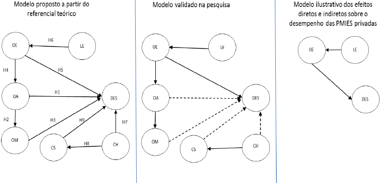 Baseando-se na fundamentação teórica e nas hipóteses estabelecidas, propõe-se o desenho do modelo a ser testado no ambiente das Pmies privadas, ilustrado na figura 3.