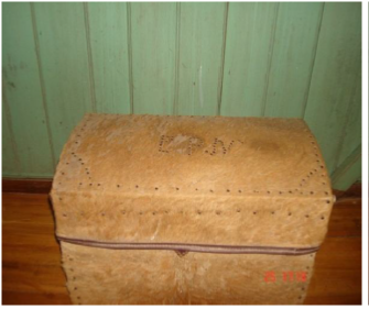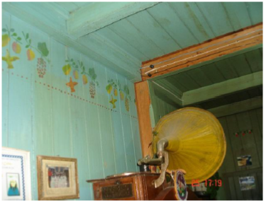 A casa torna-se um espaço com novos usos e estes ganham outras interpretações. A cozinha, transformada em cozinha turística, ao mesmo tempo em que passa a ser um espaço para o turista, continua sendo ocupada por uma série de artefatos que pertenciam aos familiares. E esses artefatos, é importante ressaltar, são objetos que falam sobre os que viveram na fazenda, ou seja, sobre suas formas de vida. Existem outros objetos que podem ser interpretados do mesmo modo, pois representam ligação com a história e memória dos antepassados. Tais artefatos são expostos como objetos decorativos e como relíquia nos espaços destinados aos turistas. Alguns desses objetos são a canastra, a vitrola e o rádio, originalmente pertencentes a Egídio, avô de Nelci [Figura 3 e 4].