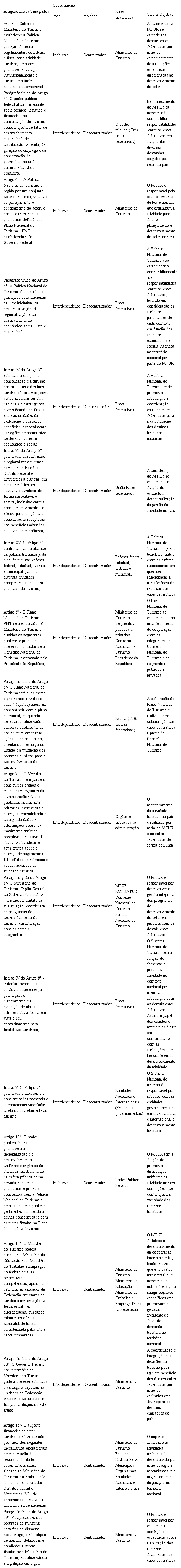 Keywords: Tourism, National Tourism Policy, Federal Coordination, Intergovernmental Relations, Brazil.