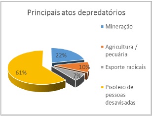 Com relação à integridade dos Sambaquis, questionou-se sobre os atos depredatórios que os mesmos sofreram ao longo do tempo; a maioria dos entrevistados tem conhecimento acerca da situação de destruição e ameaça da integridade dos sítios arqueológicos. De acordo com o resultado, tanto a comunidade quanto os estudantes consideraram que a principal ameaça aos Sambaquis é o pisoteio por pessoas desavisadas. Apontaram como exemplo o caso do Sambaqui Congonhas I que se encontra junto à um campo de futebol, e que em dias de jogos o sítio serve de arquibancada para os espectadores. Entre os adultos, 22% (Erro! Fonte de referência não encontrada.) destacaram a mineração como atividade destrutiva. Vale ressaltar que ela foi recorrente até a década de 1980; a agricultura (10%) e prática de esportes radicais (7%). Com o público escolar houve destaque para o pisoteio de pessoas desavisadas com 41% e a prática de esportes radicais com 27%, formas mais recorrentes de destruição na atualidade.