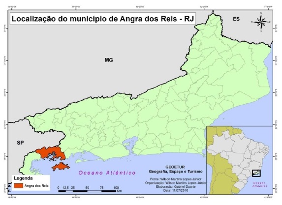 Angra dos Reis localiza-se no sul do Estado do Rio de Janeiro, a 157 km da capital Rio de Janeiro (Fig.1). É um município conhecido pelo turismo, mas que também concentra atividades importantes tais como a portuária, petrolífera [nos setores de armazenamento e de transporte], produção naval, pesca, e energia [usinas nucleares]. A sua população é de 169.511 habitantes, representando 1% da população de 15.989.929 de habitantes totais no Estado (IBGE, 2010). Seus sítios urbanos, por sua vez, descentralizados e distribuídos em diferentes bairros e distritos são distantes uns dos outros e localizados ao longo da BR 101, estando situados entre a Serra do Mar e o oceano Atlântico.