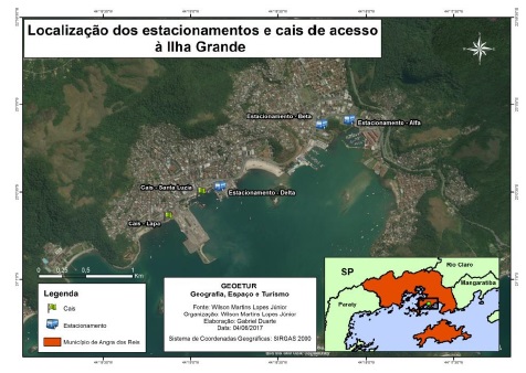 A Figura 2 apresenta a localização dos estacionamentos pesquisados, assim como dos Cais de Santa Luzia e da Lapa utilizados pelos visitantes para se dirigir até a Ilha Grande através das embarcações.