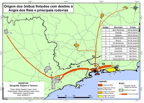 Abstract: Spatial displacement is essential to tourism, being practiced by different modalities of transport, which interconnect the places. This article results from a study of the flows of chartered buses responsible for the transportation of visitors to the city of Angra dos Reis-RJ. The methodology consisted of bibliographical research and fieldwork, with observation and structured interview. It was found that the largest volume of buses originated in the state of Rio de Janeiro itself, transporting excursionists. The State of São Paulo, in turn, was the largest emitter of buses chartered by tourists. In addition, we identified the search for Ilha Grande, in Angra dos Reis, among the beaches chosen by tourists. The totality of excursionists made schooner trips through the bay, which demonstrated an underutilization of the tourist potentialities of the mainland part of the municipality.