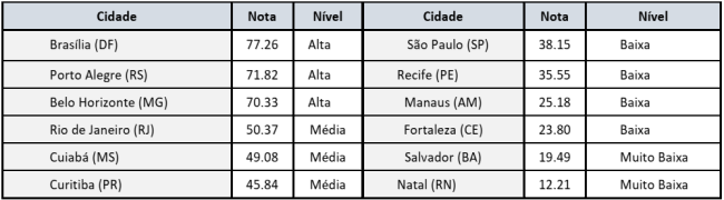 O tópico Indicadores de Transparência foi apresentado ao final dos resultados da pesquisa, em razão de notícias frequentes na imprensa sobre o não cumprimento das ações estratégicas e a não conclusão das obras públicas nas cidades-sede dos megaeventos. Para extrair os dados, a fonte foi o site do projeto Jogos Limpos, do Instituto Ethos. Parte do conteúdo do site, porém, já não estava disponível em outubro de 2017. O exemplo destacado de publicação na imprensa foi a matéria “Retrospectiva: Copa Não Causou Caos, Mas Deixou Herança Pequena”, do portal Folha Uol, pois contribui objetivamente para inferências sobre os resultados do estudo e para sugerir novas pesquisas.