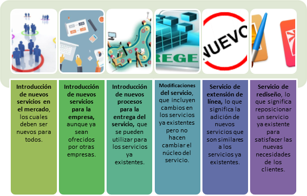 Por otra parte, de acuerdo con el grado de novedad, se distinguen otros seis tipos de innovaciones generadas por las empresas prestadoras de servicios (Fig.1).