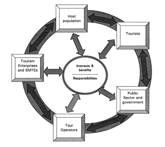 Mbaiwa, Toteng e Moswete (2007) citam que o planejamento turístico, necessariamente, necessita da integração entre stakeholders não apenas de cargos de decisão, mas todos aqueles que serão influenciados pelo desenvolvimento dessa atividade, seja ela no planejamento turístico urbano quanto em esferas de governança mais abrangentes como regional e nacional, de modo a guiar o crescimento equilibrado da atividade turística, beneficiando a todos os stakeholders inseridos. Nesta linha, Garrigós-Simón et al. (2015) apontam que um dos maiores desafios está na gestão dos recursos econômicos provenientes do turismo, haja visto que os ganhos com a atividade nem sempre são distribuídos igualmente por toda a cadeia devido, segundo os autores, aos vazamentos e perda do efeito multiplicador dos recursos.