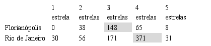 O cruzamento entre as duas cidades é apresentado na Tabela 4, com a classificação de estrelas dos hotéis e os comentários recebidos. A partir disso, percebe-se que na cidade de Florianópolis o maior número de comentários é oriundo dos hotéis com classificação de três estrelas, enquanto no Rio de Janeiro a maior frequência é nos hotéis classificados com quatro estrelas. Em ambas as cidades, grande parte dos comentários se concentram nos hotéis com três e quatro estrelas.