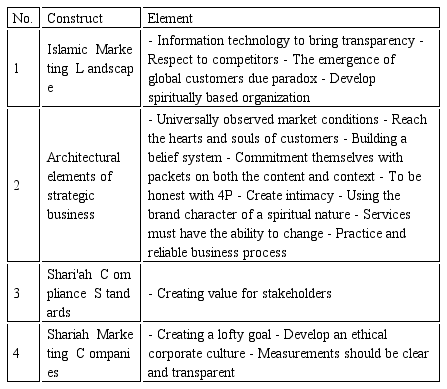 The concept of Islamic marketing is based on a philosophy of identifying elements within the scope of Islamic marketing (Arham, 2010). There are four main characteristics in Islamic marketing, which are spiritual, ethical, realistic, and humanistic. The model of establishing Islamic marketing has 4 constructs and 17 elements as the core principles of Islamic marketing (Sula & Kartajaya, 2006), as follows: