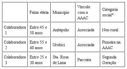 Esta é uma pesquisa exploratória e descritiva, de abordagem qualitativa e com utilização de fontes de dados primárias e secundárias. As fontes primárias para o estudo foram as entrevistas realizadas, seguindo a História Oral, durante o II Congresso Estadual da Associação de Agroturismo Acolhida na Colônia, evento realizado em Santa Rosa de Lima, Santa Catarina, nos dias 17 e 18 de agosto de 2019, em comemoração aos 20 anos de fundação da Associação. Nesta ocasião, foi possível entrevistar três agricultoras associadas [anteriormente identificadas pelos técnicos da Aaac], que participavam do evento. A escolha do evento como objeto de campo se justifica pela facilidade de encontrar os associados, reunidas em um mesmo local, já que residem em municípios distintos, a saber: Santa Rosa de Lima, Urubici e Anitápolis.