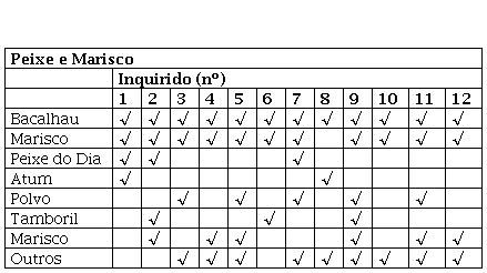 Legenda: (a) o marisco pode ser considerado como entrada, mas foi integrado na tabela relativa a “peixes e marisco”