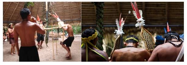 Para adentrar à floresta, segundo os habitantes que nela convivem, é necessário estar em harmonia com a natureza, com os animais, respeitando os elementos constituintes do espaço natural. Assim, antes de cada celebração, o líder espiritual faz invocações a deus Tupana, pedindo proteção aos seres vivos, uma boa colheita e outros pedidos, este fato acontece antes, durante e depois do ritual. Cada membro exerce uma função para a execução das tarefas (Carvalho, 2019). Essas relações com o ambiente, com os recursos e com os fenômenos da natureza também fazem parte de um conjunto que forma o patrimônio cultural de um grupo de pessoas, que pode constelar para o universo turístico, de acordo com Mello (2019).
