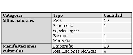 La Tabla 1 muestra, de manera resumida, los atractivos naturales y culturales inventariados por Leiva (2016) que son tomados de base para el desarrollo de este trabajo.