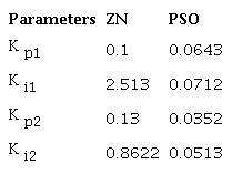 Particle swarm optimization is a technique that can handle a number of governing equations and constraints and arrive at an optimal solution for the problem at hand. The PSO technique can be used to find the Kp and Ki values using a repetitive process, which is what has been attempted in this work. The final Kp and Ki values, as suggested by the PSO, prove to outperform the Ziegler-Nichols tuning method in terms of the comparisons of the performance parameters as tabulated in Table 1.