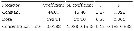 Regression analysis was developed to investigate the relationship between the variables (Deniz, 2013). The mathematical model for benzeneacetic acid removal through the statistical analysis is shown as