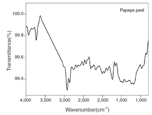 The papaya peels are washed thoroughly with distilled water to remove visible dust particles and air dried at room temperature to remove the water molecules.