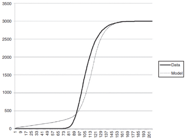 While effectiveness of file sharing is specified by η = 1 - P {downloader i has no piece that the connected peers need}. Ten replicas were run using parameters showed in Table 4. We computed confidence intervals (CI) to assure consistency between replica results. In Figure 10 results for these experiments are shown; we plotted y(t), that is, the number of seeds as a function of time. For each time t we computed η dividing the number of peers that received at least one piece by the number of total connections, that is, the rate at which a downloader i has at least one piece that connected peers need. Notice that the fluid model from (Qiu & Srikant, 2004) and our data are comparable, differences are minimal.