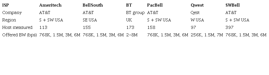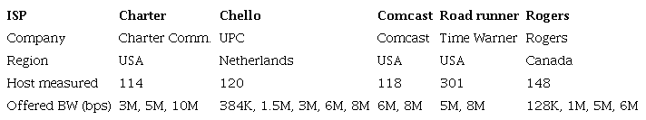 Similarly, several hosts connected to Cable ISPs were used in the network model to include other conditions that are common in the industry, for instance, over-subscription in the access network which causes different level of service experienced by customers. Table 3 summarizes the information for Cable ISPs.