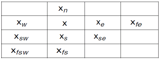 Set A consists of four neighbors of a pixel, i.e. {xe, xw, xn, xs } as defined in Fig. 1. A’ contains the 2nd and 3rd largest elements of A. M function computes the mean of a set while returns floor of α, i.e. the largest integer less than α.