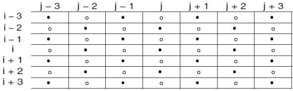 With D-Mean predictor two-stage image traversal mechanism is used. Pixels classification into 2 sets is provided in Fig. 3. Pixels of an image I having positions (i, j) are assigned to disjoint sets Θ1 and Θ2 . As both sets are disjoint, pixels in Θ1 can be used in estimation of pixels in Θ2 and vice versa.