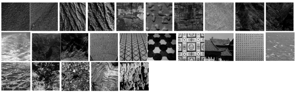 The Brodatz album is a widely used database and often treated as a benchmark for texture classification. There are substantial variations within some textures and some of them are so alike to each other that is why this Brodatz dataset is very challenging. The first database consists of 24 texture images each of size 640 × 640 pixels from the Brodatz database. Figure 3 represents the sample images of Brodatz database. In the experiment, each image is divided into 25 nonoverlapping samples of size 128 × 128 pixels. Therefore, there are 600 subimages derived from selected 24 images. Out of 25 subimages of each texture image, we have taken 12 subimages for training and the remaining 13 subimages for testing. The Vision Texture (VisTex) dataset is prepared by the Massachusetts Institute of Technology (MIT). VisTex database contains colour texture images that represent the real world conditions. Our second database includes 25 texture images of size 512 × 512 pixels from VisTex database and split into 16 nonoverlapping samples of size 128 × 128 pixels. Thus there are total 400 samples available out of which 200 samples are used for training and 200 samples for testing. The images are converted to grayscale before feature extraction. Figure 4 depicts the sample images of VisTex database. The achievement of classification success rate is verified using k-NN classifier.