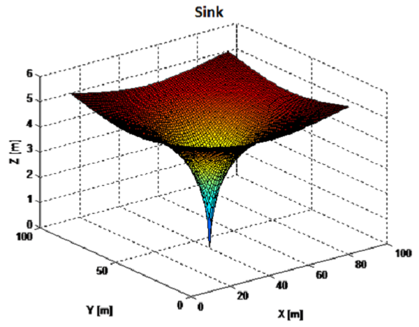In hydrodynamics, a harmonic function with spherical symmetry of type (8) and (9) is called a source or sink depending on the sign of C1 or C3. In this paper we will consider a source/sink the equation defined in (11), depending on the sign of λ, which will be called source when λ<0 and sink when λ>0.