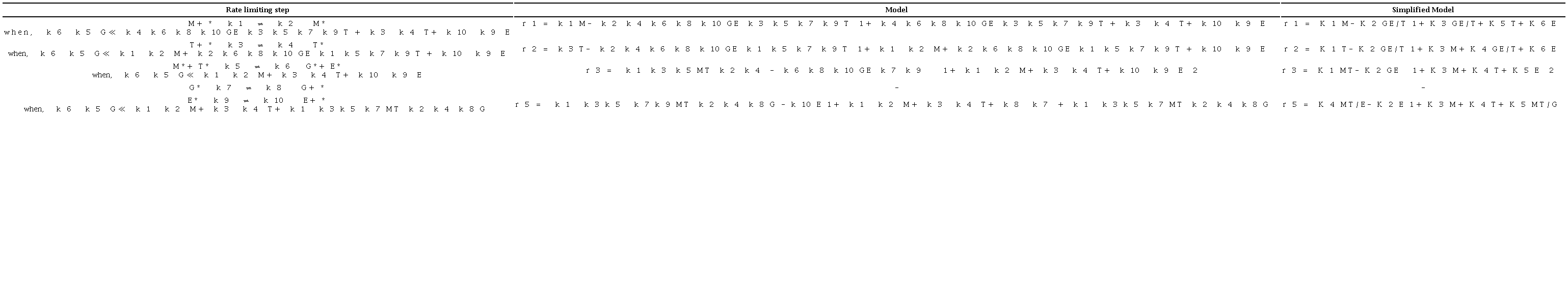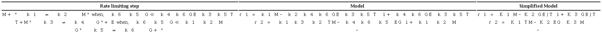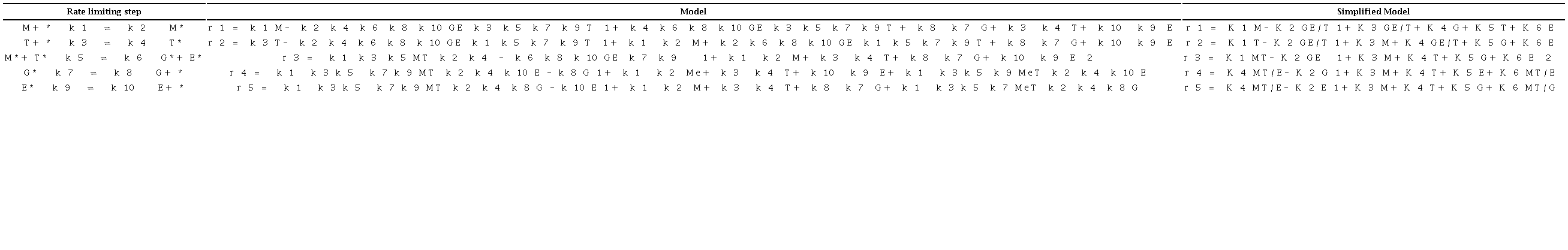 In addition, two other set of kinetic models based on LHHW and ER mechanisms were assessed and these are summarized in Tables 4 and 5, respectively. The difference between the models presented in Tables 4 and 5 and the ones presented in Tables 2 and 3, is that the glycerol adsorption term is assumed small compared to the other adsorption terms.