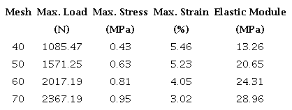 Mechanical compression tests were carried out on 10 samples of each formulation (mesh size). Results showed that experimental mortars exhibit fracture mode II, which basically are shear strength, since the load was uniformly distributed over the sample generating first cracks in the cube corner sections that act as stress concentrators within the mortar causing it to crack. Porosity and internal imperfections affect the cracking progression along the sample which in some cases led and directed the cracking development both internally and externally.