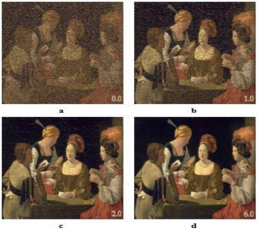 Figures 16 and 17 show the effect of the number of iterations on the image quality and we have found that the result obtained was much improved when the number of iterations increases. In a Gaussian channel, the image correction is performed for a number of lower iterations than that of a Rayleigh channel.