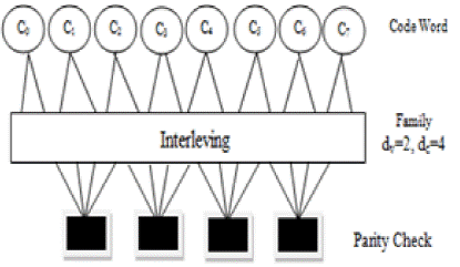 These codes were ignored until 1981 when Tanner (1981) has given a new interpretation of a graphical perspective. After the invention of turbo codes, LDPC codes were rediscovered in the mid-90s by MacKay and Neal (1997), (Peterson, 1960) and Sipser and Spielman (1996). Construction and decoding of LDPC codes can be made in several ways. An LDPC code is characterized by its parity check matrix.