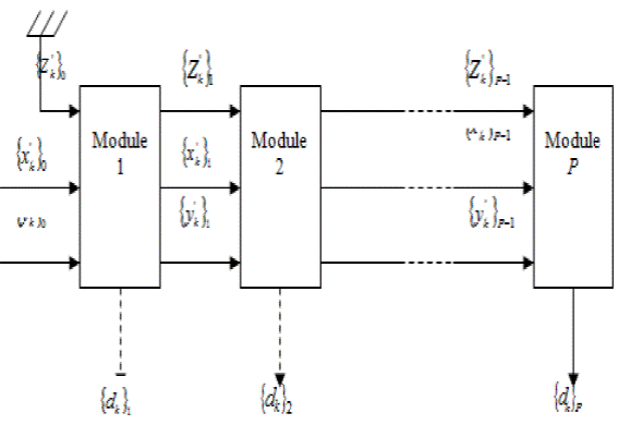 The input of the module Péme is composed of the received sequences and properly delayed and the sequence of the cons - reaction generated by the module (P-1)éme