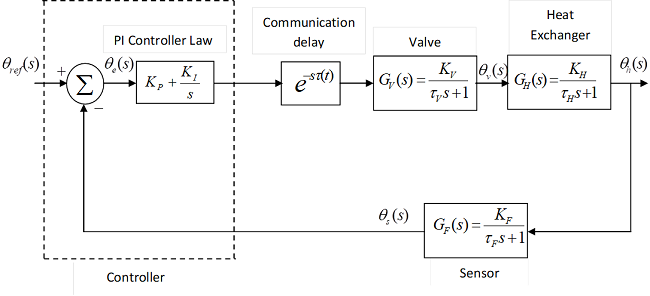 In this fast growing communicative world, network based control/networked control system (NCSs) unit are the default modules in all modern control equipments (Cloosterman, Van de Wouw, Heemels, & Nijmeijer, 2009). These control units include: valves, actuators, sensors and Processes etc, that are connected through the communication channel (Liu & Li, 2014). In the recent years, the use on NCSs has received more attention due to The stability, flexibility, reliability, cost-effectiveness maintenance.free and flexible applications et, are some of the prerequisites of the networked control systems (NCSs) (Cloosterman et al., 2009; Lui &Li, 2014). Due to the uses of NCSs for sharing the signal/data in common network have some limitations such as network-induced time delays (Chung, Ibrahim, Asirvadam, Saad, & Hassan, 2016; Jin, Wang, & Zeng, 2015) and packet dropout (Yu, Wang, Chu, & Hao, 2004). The packet dropout is unimportant which means, we receive that all signals (input/output) are communicated in a single packet. Hence, the important issues in NCSs are the time-delays effects in the control loop. These time-delays in the NCS are inevitable, and so proper technology must be identified and incorporated (Chung et al., 2016; Cloosterman, et al., 2009; Jin et al., 2015; Liu & Li, 2014; Yu et al., 2004). The stability analysis of dynamical system with time delays is very essential part to design a controller (Gu, Chen, & Kharitonov, 2003; Malek-Zavareo & Jamshidi, 1987; Naranjo-Montoya, 2015;Oladapo, Balogun, Adeoye, Olubunmi, & Afolabi, 2017; Ramakrishnan & Ray, 2015; Wu, He & She, 2010; Venkatachalam, Prabhakaran, Thirumarimurugan, & Ramakrishnan, 2019). Certain unidentified problems, such as exogenous noise and parametric uncertainty are affecting the stability of the networked control systems (He, Liu, Rees, & Wu, 2007; Li & De Souza, 1997; Lakshmanan, Senthilkumar, & Balasubramaniam, 2011; Park, 1999; Parlakci, 2005; Ramakrishnan & Ray, 2015; Ramakrishnan & Ray, 2016; Venkatachalam & Prabhakaran, 2018). In the stability analysis, incorporated into the uncertainties are stated here (i) time-varying nonlinear load perturbations with respect to current and delayed state vector and (ii) time-varying parametric perturbations in the system. The novelty of the study is basically lies in mathematically modelling of load disturbance as a bounded nonlinear function (He et al., 2007; Lakshmanan et al., 2011; Ramakrishnan & Ray, 2016) and norm bounded type parametric perturbations (Park, 1999). The control engineering community finds it very difficult in solving these mathematical problems. A very few researchers took these challenges and put forward few mathematical models to us (Gu & Niculescu, 2003; He et al., 2007; Lakshmanan et al., 2011; Park, 1999; Parlakci, 2005; Li & De Souza, 1997; Moon, Park, Kwon, & Lee, 2001; Ramakrishnan & Ray, 2015; Ramakrishnan & Ray, 2016; Zhang, He, Jiang, Wu, & Wu, 2014). Delay dependent stability of thermal system with uncertainties being mathematical modelled as a bounded function has not been discussed in the survey. Thermal system is dynamical and depends on the temperature of the working substance (López-Morales & Valdés-Asiain, 2005; Sharma, Gupta, & Kumar, 2011). In process Industries, medical applications, generating power stations etc., are using the thermal energy is controlled over a remote control center, then the closed loop thermal control method will be finished through a communication link. In the network based thermal control unit, there is a tendency of the system parameters to drift away from the equilibrium point due to the time delay in the feedback thermal system (Sharma et al., 2011). This fact motivated us to design and study the stability of a heat exchanger system with the fundamentally sufficient parameters and conditions based on Lyapunov-Krasovskii functional method in this research work (Boyd, El Ghaoui, Feron, & Balakrishnan, 1994; Park, Ko, & Jeong, 2011). The following attempts have been carried out systematically and validated on standard benchmark of heat exchanger system:
