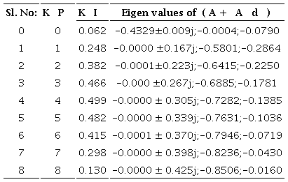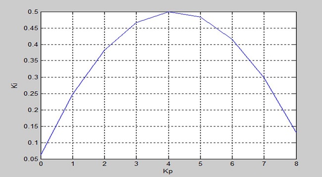 Now, the Eigen values of the (thermal control) system state matrices are observed that depend on the controller gains. Table 2 shows that the maximum values of integral controller for a fixed value of proportional controller gain, for which, the thermal control system is on the verge of instability, i.e . having one complex-conjugate pair of eigen values on the axis. It is observed from the Fig. 2 that there is a tendency for the curve to decrease gradually with increase of .