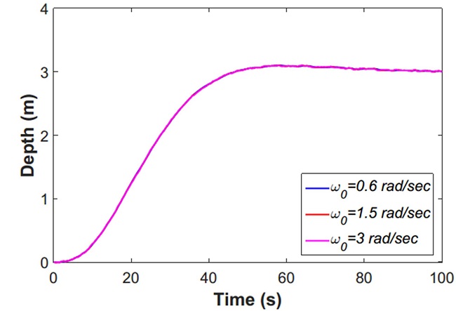 If it's considered a head sea, therefore the direction of waves for the HRC-AUV moving with forward speed and the wave frequency will be the encounter frequency . The poles location for depth/pitch observer are chosen , and , resulting the observer gain vector .