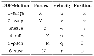 -Translation: Moving up and down (heaving), moving left and right (swaying) and moving forward and backward (surging);