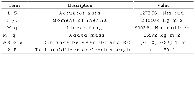 On this basis the transfer function between the stabilizing fins angle and pitch is: