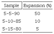 Each formulation was compressed at 140 psi, generating cold-compacted samples in the form of wafers (2 x 0.5 cm). The green samples were pre-heated at 450°C for 5 minutes (using a heating ramp of 15 °C/min) in a Thermolyne 21100 tubular oven to remove residual water and prevent ruptures generated during sintering at 700, 750, 800 and 850°C. Heating was performed in an air atmosphere using a flow of 200 cm3/min. Three repetitions were made for each sintering temperature. To evaluate the effect of sintering time on the material characteristics, the 800°C sample was kept in the furnace during different times (10, 20, 30 and 40 minutes). The used methodology was in accordance with the studies of Guo et al. (2014), their study also used CaCO3 as a foaming agent.
