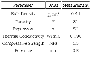 Ceramic foams are considered as low density and porous materials with high thermal and acoustic insulating properties. These characteristics make them very interesting for use in the construction industry (Liu et al., 2016; Presas, 2008) since thermal insulating is economically highly appreciated (Bai, Yang, Xu, Jing, & Yang, 2014). Today, there are high costs implicated to keep homes and workplaces climatized (Ji, Zhang, He, Liu, & Wang, 2015), especially in geographical areas where extreme weather predominates (Kato, Ohashi, Fuji, & Takahashi, 2008). In the north part of Mexico, construction is based on bricks made of baked clay and concrete blocks. These materials are poorly insulating. Thus, the application of polymeric coatings to compensate for this lack is frequent (Meir & Roaf, 2006). The most used polymeric insulators are expanded polyurethane or polyethylene sheets; these are typically placed outdoors because of their excellent insulating properties (their thermal conductivity coefficients; k are below 0.05 W/m K) (Ozel, 2011). However, they have the disadvantage of being highly flammable and can release toxic gases when they are in contact with heat sources; thus, these are not considered for indoor installation (Vancea & Lazău 2014). Another issue is that polymeric coatings are damaged by ultraviolet light, so a layer of protective paint must be applied to prevent its exposure, its application being recurrent at least every 5 to 8 years, increasing its maintenance costs (Sousa, Amorim, Medeiros, Mélo, & Rabello, 2006).