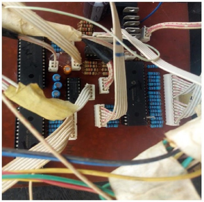 Cylindrical tensile specimens were machined from the heat As has been noted earlier, the logic control of this design is realized with the aid of a microcontroller (PIC 16F877A). The import of the three microcontrollers as utilized in this design is to ensure that the three basic aims of this project work- normal traffic control (including timing), density sensing, and application of GSM module, are all achieved in the most effective and efficient manner; troubleshooting becomes easier in case of faults. In order to set the three microcontrollers into operation, a set of instructions is written, assembled and burnt into a Printed Circuit Board (PCB) after the phase design and the truth table had been realized. ‘C language’ is used in writing the codes that satisfies the different phase designs as well as for the density-based sensing and that of the GSM application. Fig. 4 is the circuit board implementation of this work. Of course, the circuit board design was constructed after a real time simulation of the work using Proteus Labcenter software on which it was confirmed to be working perfectly.