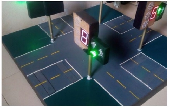 Guided by the geometry of the intersection, flow pattern and the relative magnitudes of flow, phase design was done to differentiate the conflicting movements in the cross road junction. The traffic override is either performed by the push button switches representing the pressure switches for density detections or the GSM module for emergency cases at any given time. A Proteus Labcenter circuit design of the system was first simulated before actual implementation. The traffic override capability of the design was tested and was found to be working properly both in density detection scenario and in emergency situation.