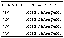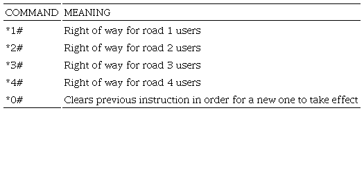An MAX232 IC which is a level converter is used to convert logic voltage levels to signals suitable for use in TTL compatible digital logic circuits by the PIC. Therefore when a code is typed from the operators phone, for instance *1#, on getting to the PIC, it performs the function of overriding the traffic flow and automatically giving road 1 users the right of way. Different codes represent different functions that the PIC is supposed to perform. Below is a list of the commands used in this work.