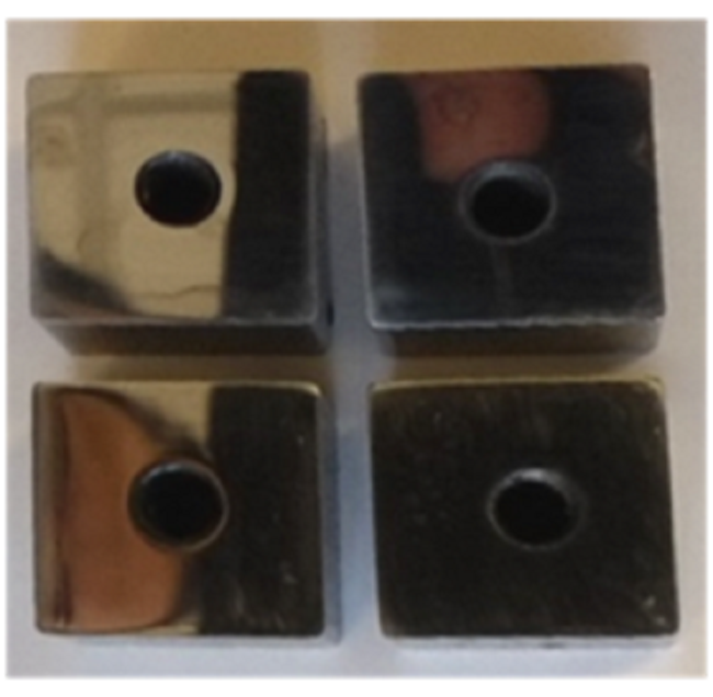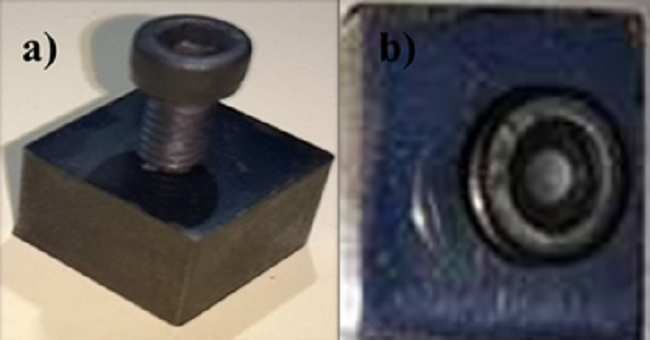 In the present research commercial low carbon steel AISI 1018 (Fe 99.06%, C 0.17%, Mn 0.7%) was used as the substrate material (1/2 pulg. squared solid profile) used in rods, tensors, steering bolts and chains (Figure 1). Due to its ductility it is ideal for cold transformation processes: stamping and folding. The specimens were cut with dimensions of 12.5 mm x 12.5 mm and 13 mm thick. The surface was polished by using different abrasive papers: 240, 400, 600, 800, 1000 and 2000. Subsequently diamond paste of 5 μm, 3μm and 1μm was used for obtaining mirror finish surface. A scanning electron microscope (Quanta 3D FEG) equipped with energy dispersive spectroscopy (EDS) technique was used to determine the chemical composition of the substrate. The composition of the low carbon steel AISI 1018 is given in Table 2.