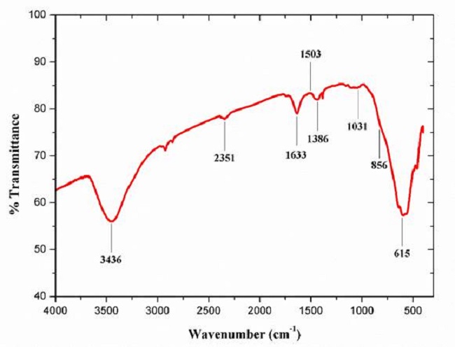 Figure 4 shows the FTIR spectra of the Al2O3 coating removed from the substrate (Figure 2). Amorphous Al2O3 shows a broad peak in the range of 500-900 cm-1. This is due to Al-O stretching mode (750-850 cm-1) and O-Al-O bending mode (650-700 cm-1) (Carmona et al., 2008). There is a broad peak between 3000 cm-1 and 3700 cm-1 which indicates the OH region. Since there is a peak at 1633 cm-1 which can be considered as the H-O-H system (Nakamoto, 2009), while the peak at 3436 cm-1 can be due to the water molecule. Also, there are multiple peaks that represent the characteristic absorption band of alumina that is wide band laying between 900 and 500 cm-1 corresponding to stretching Al-O-Al vibrations (Giri, Sarathi, Chakravarthy, & Venkataseshaiaha, 2004). Stretching vibrations of Al-O and OH are observed at 581 cm-1 and 3415.66 cm-1 respectively. The lack of the H-O-H system in the annealed sample indicates that OH mode at 3414 cm-1 corresponds to hydroxyl species. CH bending vibrations of CH3 are present at 1386 cm-1.